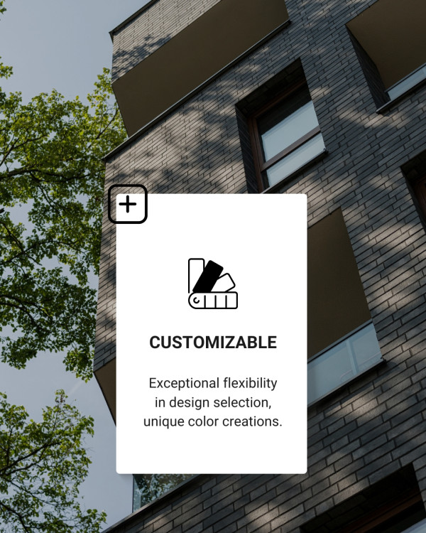 Customized facade design is in higher demand than ever. With our innovative digital printing technology, we open up new possibilities for surface design. Whether natural textures, creative patterns, or precise reproductions – our ceramic brick-slips combine aesthetics with long-lasting durability.